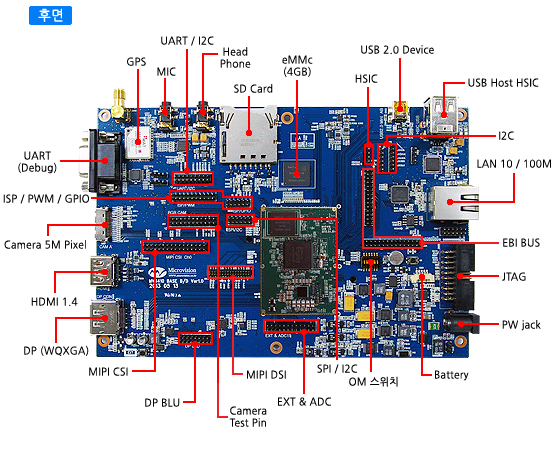 Octa Core 프로세서가 동작하기 위한 고성능 LPDDR3(2GB)와 대용량 eMMc 메모리 지원하므로 다양한 매체로 활용 할 수 있다. 아울러 최대 13MP@30fps의 Image Signal Processor (ISP) 구현 가능하며, 영상출력 쪽으로는 1080P 기반의 HDMI 1.4a 와 입체적 영상을 위한 2D/3D 그래픽 가속기 지원 하므로 고성능 단말기, DID, Tablet PC, 산업용 시스템제어, 게임기 등 다양한 분야에 적용 할 수 있다.